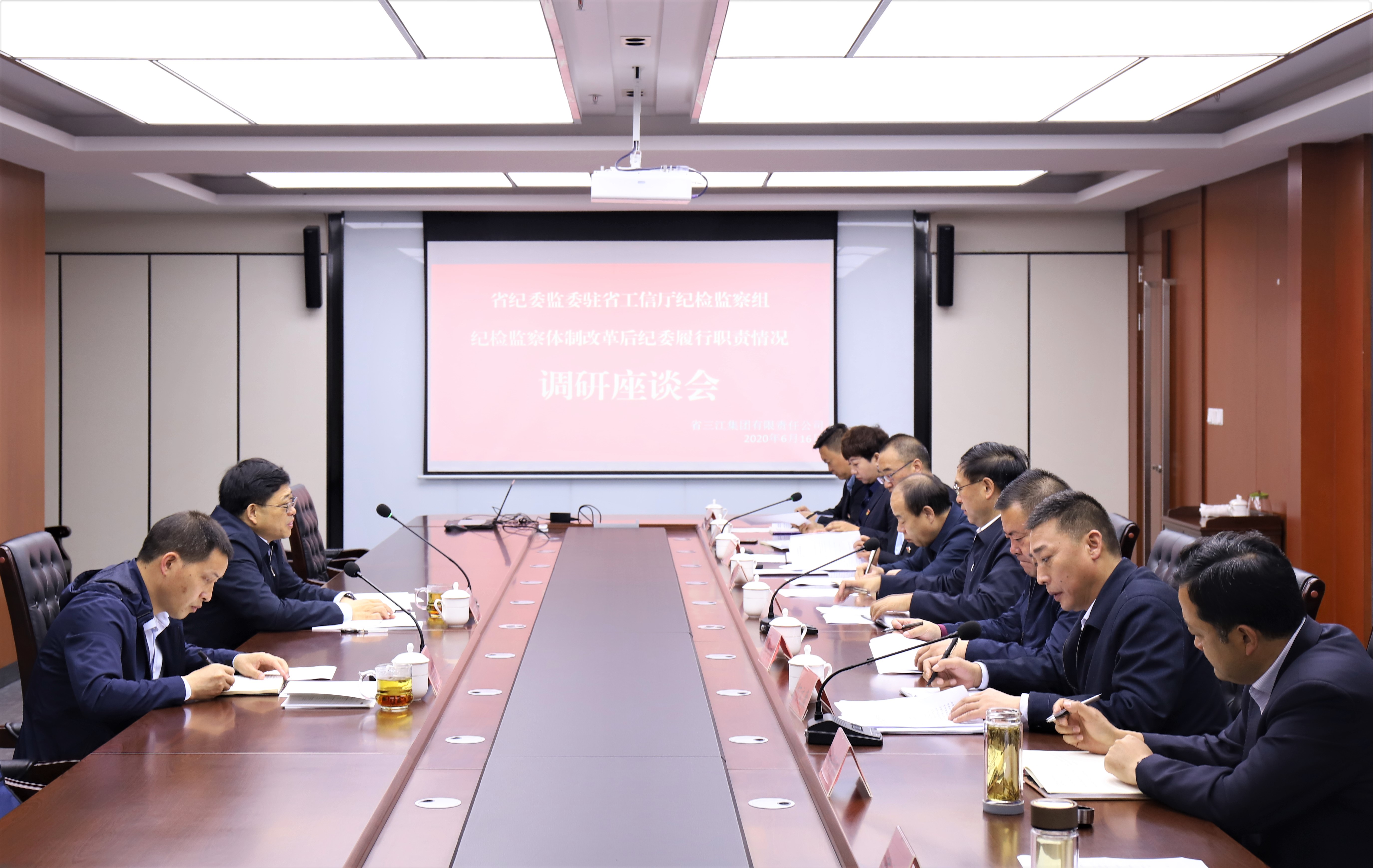 6月16日,省紀委監(jiān)委駐省工信廳紀檢監(jiān)察組組長劉青林、四級調研員朱元虎同志一行到集團公司就紀檢監(jiān)察體制改革后紀委履行職責工作進行調研指導,并召開座談會。集團公司黨委書記、董事長馬榮華主持座談會。