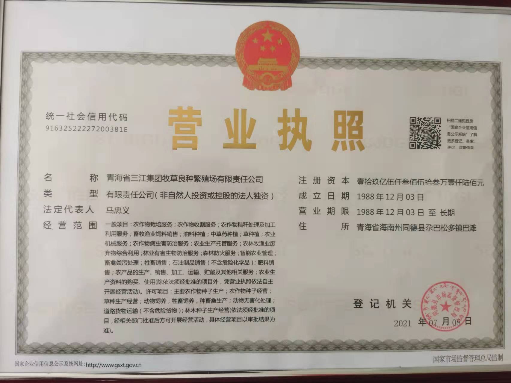 青海省三江集團牧草良種繁殖場有限責任公司及所屬子公司工商信息公開