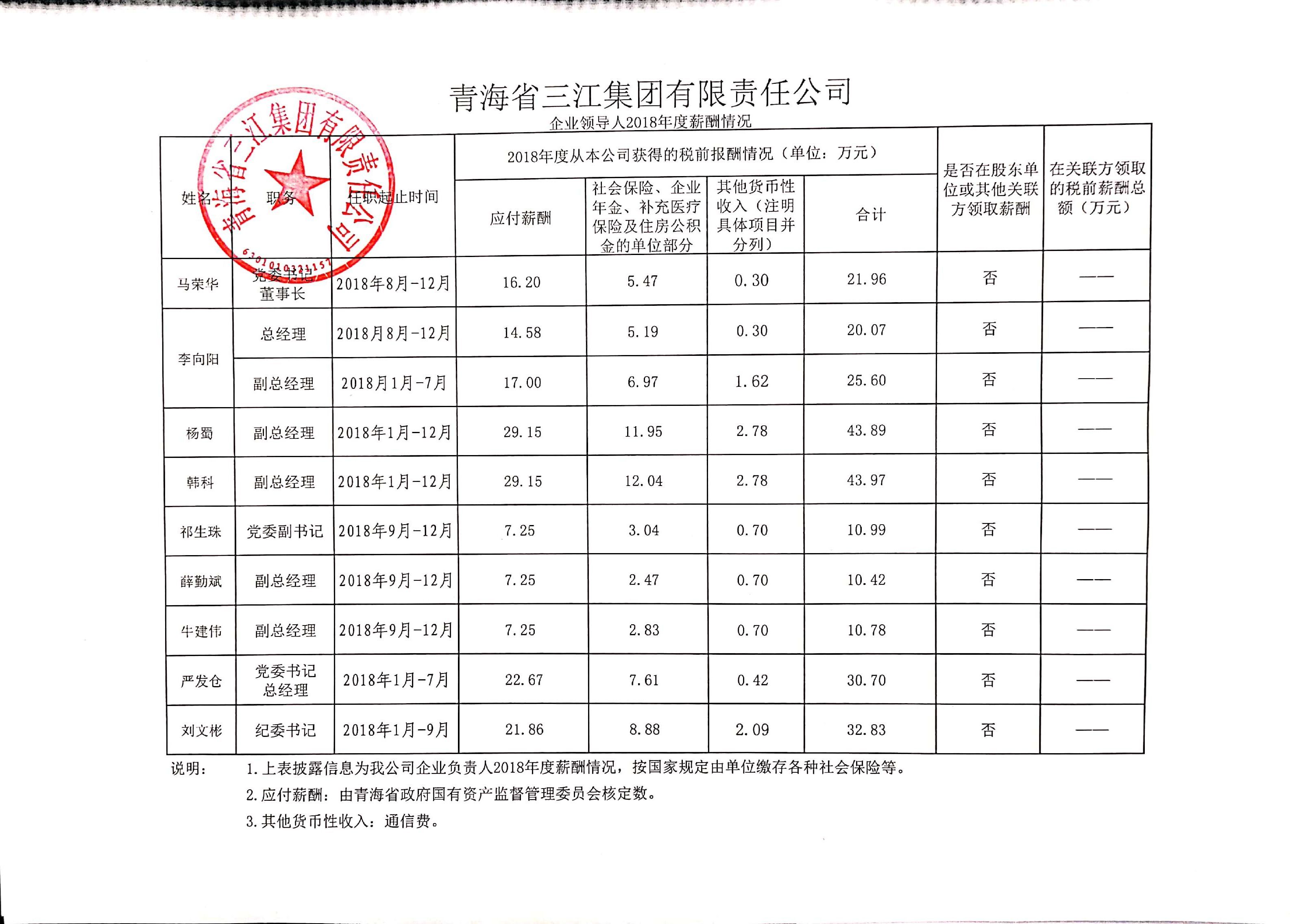 2019年度青海省三江集團有限責任公司企業(yè)負責人薪酬信息