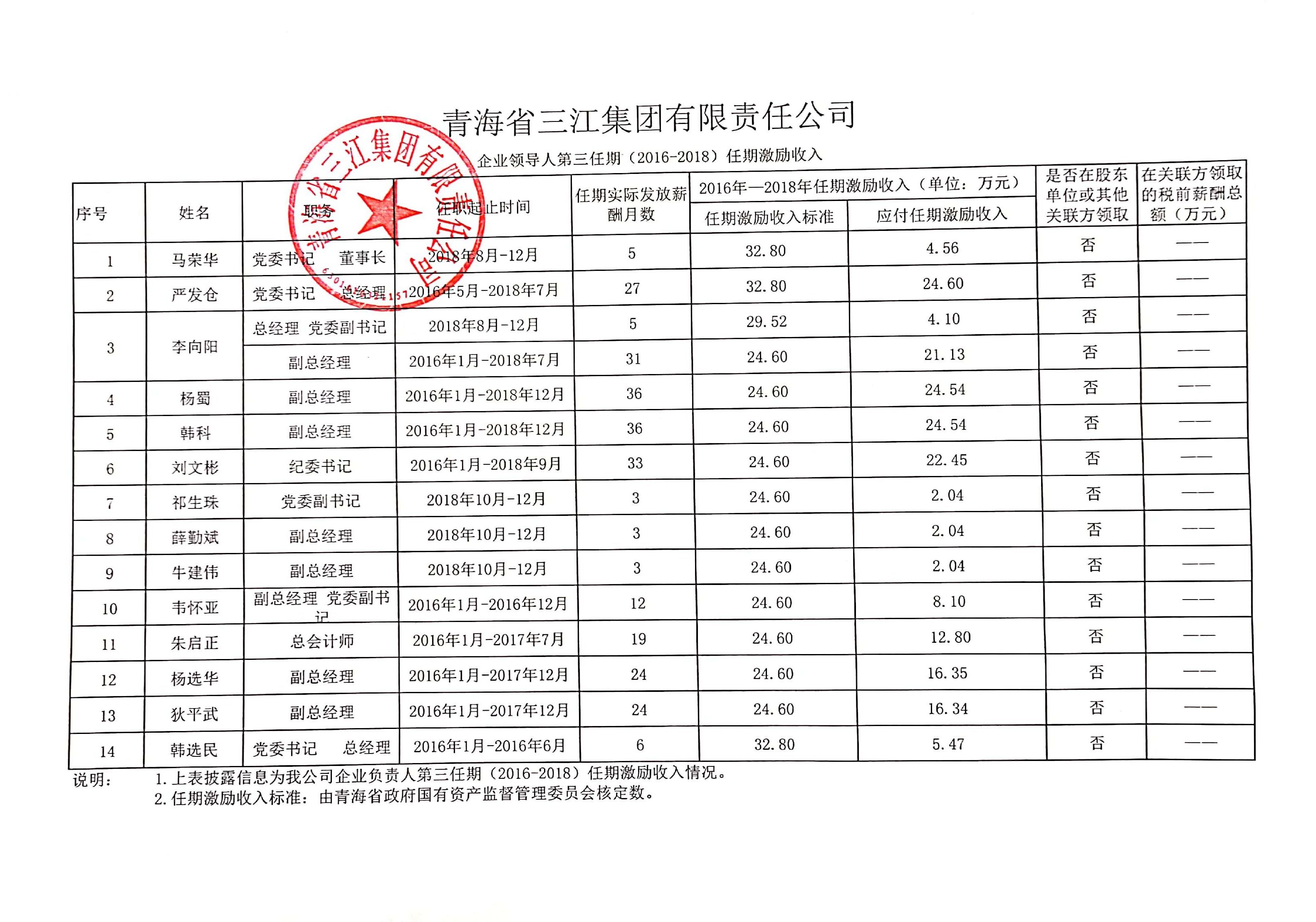 三江集團企業(yè)領導人2018年度薪酬情況及(2016-2018)任期激勵收入情況