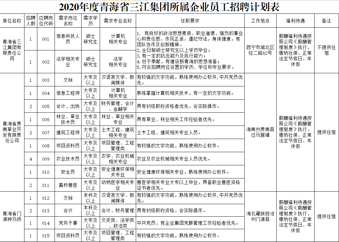 此次擬招聘崗位39個,具體內(nèi)容詳見附件1,即《2020年度三江集團所屬企業(yè)員工招聘計劃表》。